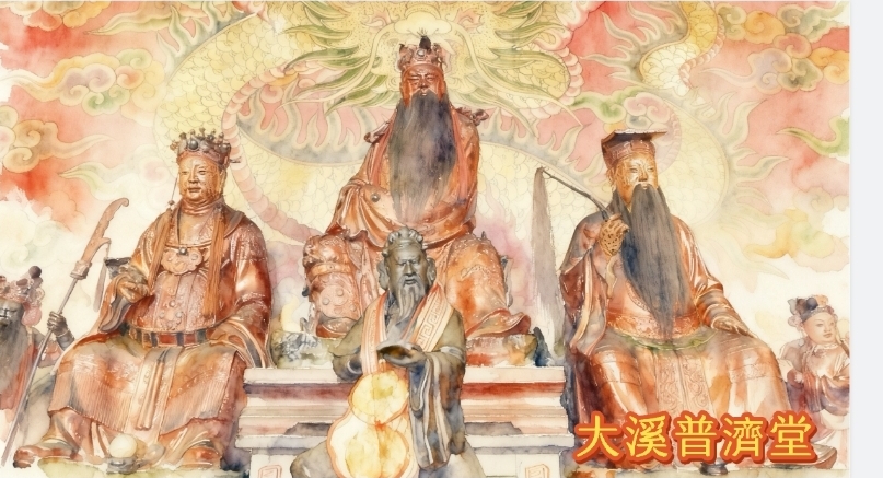 日本據台初期,大溪凭借山產、農產、礦產開發及水運便利,百業興旺,呈現繁榮景象。1902年(明治35年),地方士紳江序益首倡創立“普濟堂”。初期以“鸞堂”形式設於民宅,通過降筆為鄉民排解疑難、勸人向善,因信眾篤信三恩主且數量日增,後購置房舍遷至現址,成為當地共同的信仰中心。